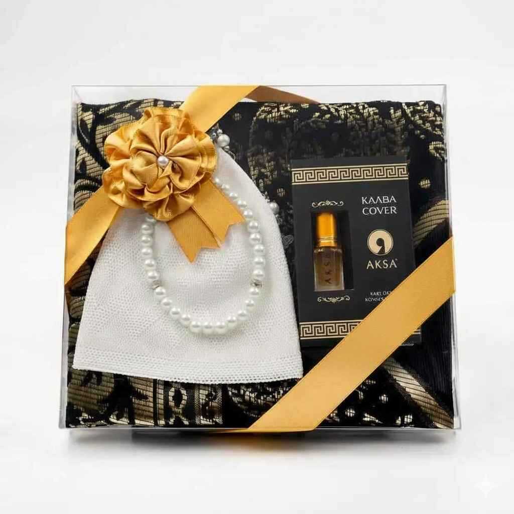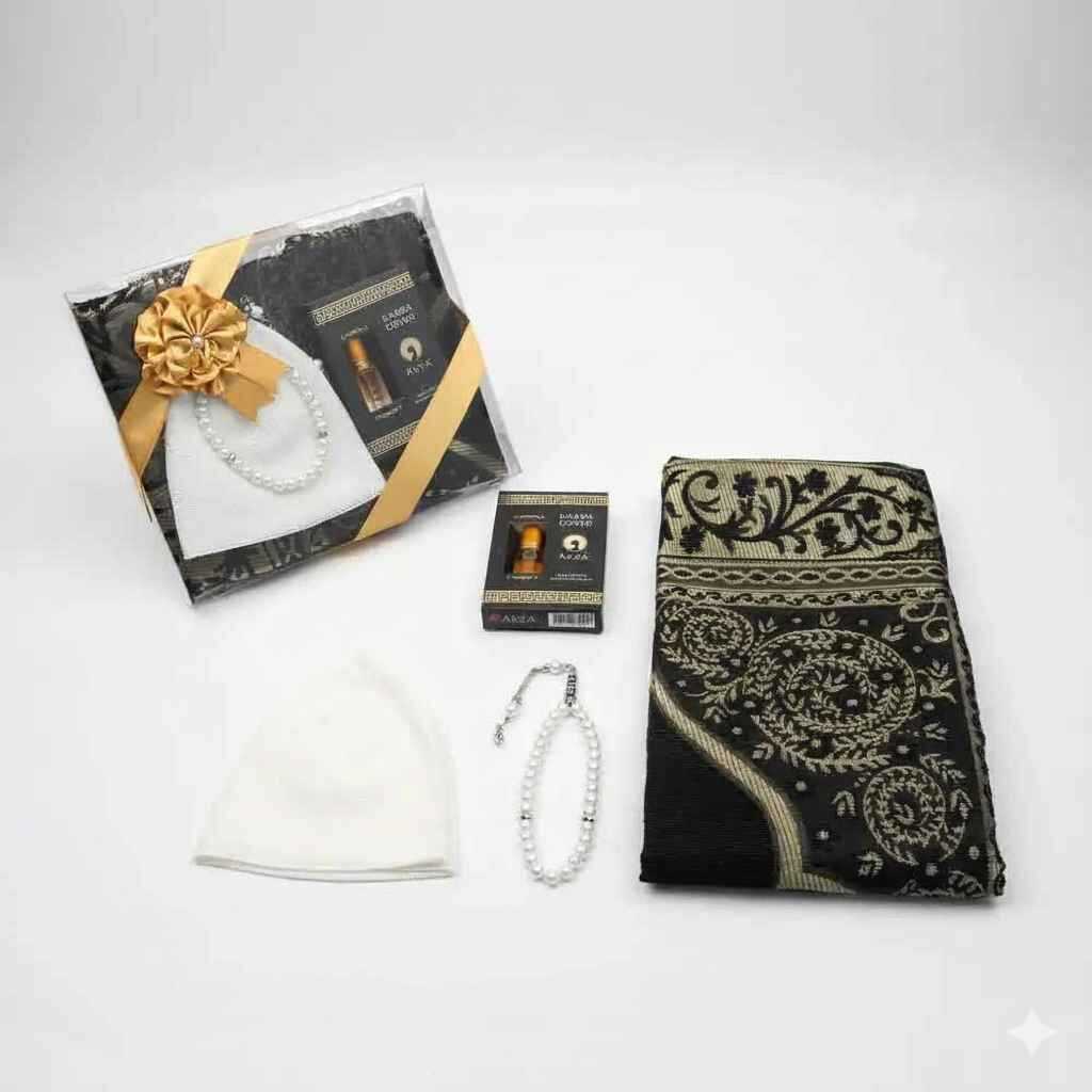 Takke + Esans + Tesbih + Seccade Hediye Seti (Siyah)