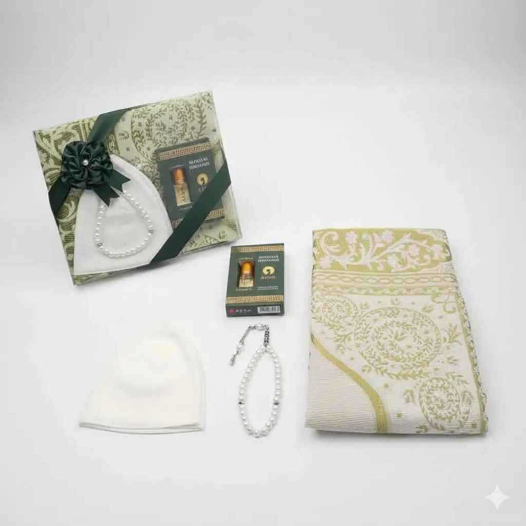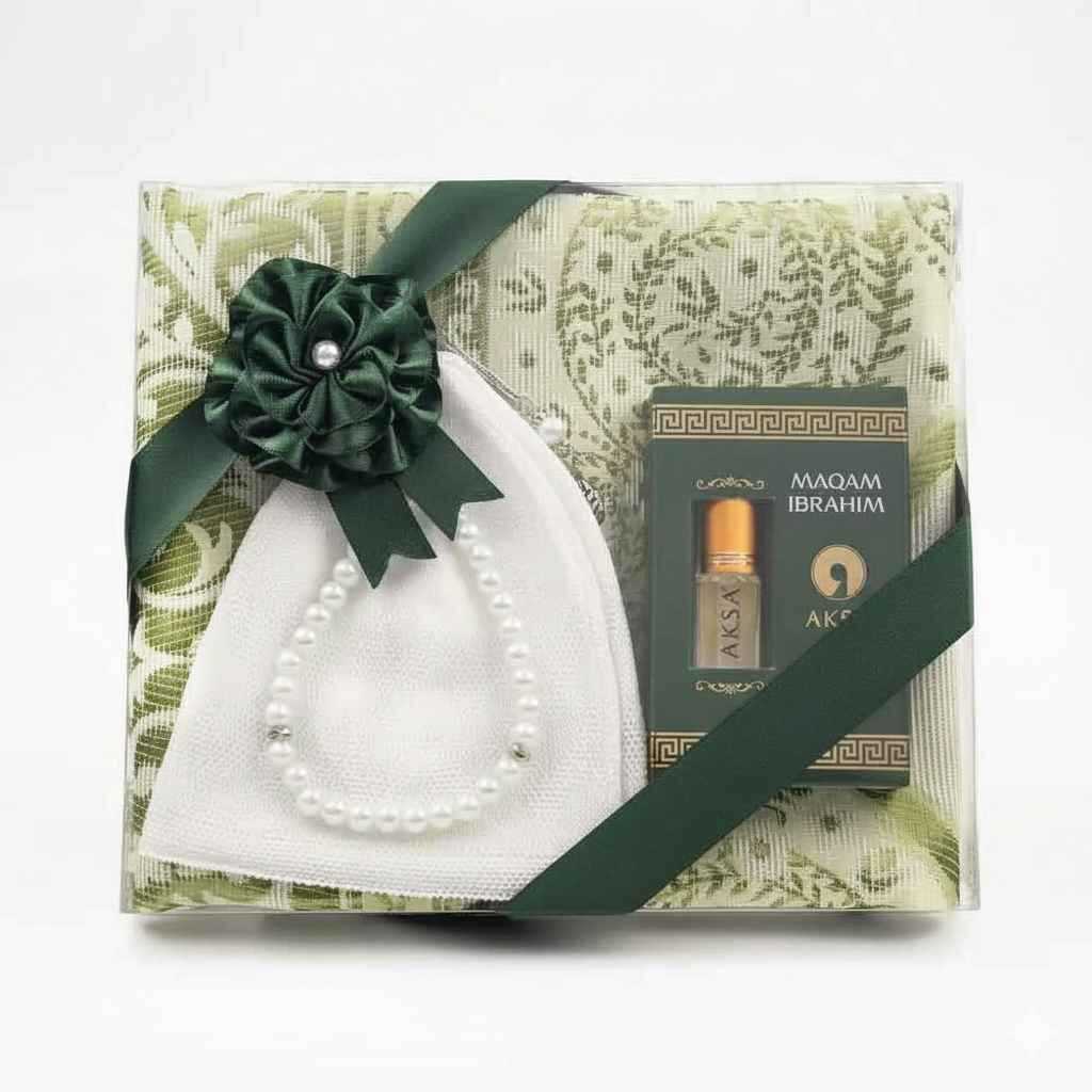 Takke + Esans + Tesbih + Seccade Hediye Seti (Yeşil)